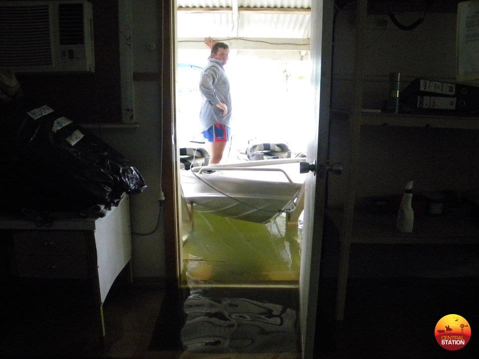 By night 3 we knew what was happening. Except there was an unexpected twist in the plot. At about 5:30pm the airstrip was just going under. We had the chopper on the back of a truck inside the shed. Then the generator stopped. Walking downstairs to get my rain coat off the line, the water was just lapping at the cement of the house. I felt this excruciating pain engulf my foot. I quickly looked down and seen a spider floating away. “SHIT!” I thought. “What now?” The phones were out, the airstrip was covered in water and it was just about dark so we couldn’t use the chopper. Ken told me to go upstairs and wrap my foot while he tried to get the generator started. I remember thinking to myself “Well if this is it, there isn’t much I can do”. Ken returned home from the generator shed about 20 minutes later after he had got everything back online except our phones. By this stage the Telstra box was in the water and the lines had cut out. Ken asked me how I was going, at that stage it was still just a sore foot, he turned and said “Well if you’re not dead in the morning you’ll be good to go” in true Ken humour. Thankfully that was the worst of it.