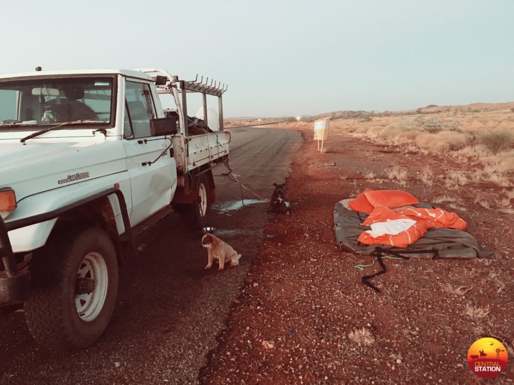 “What a way to start off a trip! 1,227km driven in just the first day, that was it I’d had enough of listening to D.I.L.L.I.G.A.F by Kevin Bloody Wilson 200km down the road. The most ridiculous part of this is we were (for privacy reasons lets just call him X) had been staying with a friend in Pannawonica, WA, but had to turn around and drive south 446km to pick up the boyfriends new purchase of a .22 rifle before turning around & driving the 446km back north on the road we’d just come down on, to start off again where we had just hours before. Just a few weeks prior to this we had already racked up 4,039km from travelling to & from Perth to the Gascoyne in Western Australia. Anyway, finally making some progress on the trip & K.B.Wilson on repeat at 10.45pm, we pulled up to camp on the side of the road in a truck bay in the ol’ faithful swag with the two pups piled in with us for protection … you know just in case someone MURDERED us out here!”